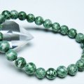 天然石・パワーストーンの銀座東道 素材で探す(サ行) 素材で探す(サ行)ジャスパー(碧玉) 素材で探す(サ行)ジャスパー(碧玉)グリーンスポットジャスパー ブレスレット グリーンスポットジャスパー ブレスレット 8mm [T285-1459] 価格: ¥1,000 (税込) [ポイント還元 10ポイント~] 販売期間: 数量: 個 在庫: 1個 在庫 1個 返品についての詳細はこちら § 商品について §商品ID◆ t285-1459 重 量◆物重さ:約 17.6g ◆ 総物重(梱包前) 約 17.6g (本体、箱等を含む)商品サイズ◆内周:約159mm(±5mm) 粒直径:約8mm(±0.5mm)【ジャスパー(碧玉)】 ジャスパーは石英の結晶に様々な不純物が混じり結合した鉱物で、アゲートやカルセドニーと同じ仲間です。 構成が似ているため分類が難しいのですが、基本的に不純物の割合が多く不透明のものがジャスパーとされています。 抽象画のような味わい深い模様を持つものや鮮やかな色合いを持つものなど多彩な表情を持ち、個性を楽しめる石のひとつだといえるでしょう。 ジャスパーは日本にも縁が深く弥生時代から管玉や勾玉に加工され古くから装飾品として愛用されてきました。 なかでも島根県の玉造温泉は玉造石を使った勾玉の名産地だったといわれており、この土地で産出されたジャスパーは玉造石のひとつとして「出雲石」という別名でも親しまれています。 このほかにも青森県で産出される「綿石」もジャスパーを含んだ美石として知られています。 ジャスパーは正しい判断力と決断力をもたらすとされ、心身の疲労やストレスを癒すヒーリング効果も期待されます。 バランスをとる能力に長けた石ですので、仕事や人間関係でうまく立ち回りたい方や、生活に安定や平穏を望む方に特におすすめです。 ⇒ ジャスパーをもっと詳しく ◆ワンポイント情報 ジャスパーは不純物の成分によって色合いが大きく異なります。ヘマタイトを含有したものは赤色、クローライトを含有したものは緑色、クレイ粘土などの不純物が含有した黄色など、多彩な色合いのジャスパーが存在します。 ▼出品商品の全ては産地から直接仕入れた新品ですが、天然の物ですので不純物や内包物、色むら、天然キズ、ひびがある場合がございます。また商品はできるだけ現物に近い色で撮影していますが、光源.カメラ.モニター画面により実物と色が若干異なる場合があります。▼物重さ、商品のサイズなどは測り方によって誤差が生じる場合があります。▼誠安では環境に配慮し最低限の簡易包装で商品をお届けいたします。