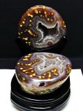 天然石・パワーストーンの銀座東道 素材で探す(ア行) 素材で探す(ア行)アゲート(メノウ・瑪瑙)トレジャーメノウ 置物 2Kgペア水晶トレジャーメノウ[T604-7738] 価格: ¥22,550 (税込) [ポイント還元 225ポイント~] 販売期間: 数量: 個 在庫: 1個 在庫 1個 返品についての詳細はこちら § 商品について §商品ID◆ t604-7738 重 量◆物重さ:約 2Kg ◆ 総物重(梱包前) 約 2.8Kg (本体、箱等を含む)商品サイズ◆高さ:約113mm ~65mm 横:約110mm ~130mm 厚さ:約50mm ~120mm【アゲート(瑪瑙)】 和名では瑪瑙(めのう)といい、アゲートの模様が馬の脳のように見える事からこのような名前が付けられました。 アゲートは赤、緑、青、黄、黒など、様々な色に着色されることで石本来のパワーがさらにアップするといわれており、着色により魅力を増す天然石はアゲートだけとも言えます。 さらにはアゲートを組み合わせるとペアになっているペアアゲート(トレジャーメノウ)は龍穴を生み出すとされ、風水的にも良いといわれています。 アゲートは古来より日本やインドやチベットなどで魔よけやお守りとされてきました。 失敗や不幸を遠ざけ金運や仕事運、成功運とも結び付けてくれる効果のほか、安産のお守りにも良いとされています。 さらに家庭円満や対人関係をスムーズにするなど、オールマイティな効果を持った石です。 ⇒ アゲートをもっと詳しく ◆ワンポイント情報 アゲートはカルセドニーの変種で、染色がされていなくともそれぞれの種類に多様な色があります。 ざっと仲間を挙げてみてもオニキス(黒)、サードニクス(橙色)、ブルーアゲート(青)、グリーンアゲート(緑)、イエローアゲート(黄)、ブルーレースアゲート(縞青)、モスアゲート(縞緑)、天眼石(縞黒)、カーネリアン(橙色)、ジャスパー(多様な縞)などとても多くの特徴と色合いを持っています。 ▼出品商品の全ては産地から直接仕入れた新品ですが、天然の物ですので不純物や内包物、色むら、天然キズ、ひびがある場合がございます。また商品はできるだけ現物に近い色で撮影していますが、光源.カメラ.モニター画面により実物と色が若干異なる場合があります。▼物重さ、商品のサイズなどは測り方によって誤差が生じる場合があります。▼誠安では環境に配慮し最低限の簡易包装で商品をお届けいたします。